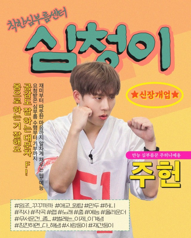 Monsta X Juheon bắt đầu hoạt động sôi nổi với vai trò MC duy nhất của web variety show. 'Đường dành riêng cho lạc đà' đã thông báo trên SNS chính thức về web variety show duy nhất của Juheon mang tên 'Trung tâm làm việc vặt tốt bụng - Simcheong-i' (gọi tắt là 'Simcheong-i') và công bố poster MC. Trên poster, Juheon nắm chặt tay thành nắm đấm và được giới thiệu là 'người làm việc vặt đa năng'.