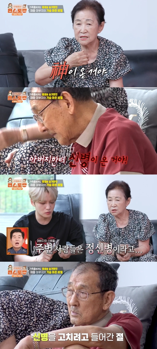 Cha của Kim Jaejoong đã bày tỏ tâm trạng sau thất bại kinh doanh. Ông nói: "Tôi đã tức giận. Không nhận ra người khác nên mọi người đều nói tôi điên." Mẹ ông bổ sung rằng chồng bà đã trải qua đau khổ về tinh thần. Bà kể: "Chồng tôi bị bệnh tim do căng thẳng, trầm cảm và rối loạn tâm thần." Ngoài ra, mẹ ông kể: "Cha tôi cũng đã nhiều lần suýt chết. Đây là lần đầu tiên tôi kể chuyện này," và chia sẻ câu chuyện sau khi ông nhận được sự trợ giúp tâm linh. Bà giải thích: "Ông ấy không chịu nhận nên như người điên. Một nhà sư nói 'Hãy đến chùa để lấy lại sự bình tĩnh' nên tôi đã gửi ông ấy đến chùa."