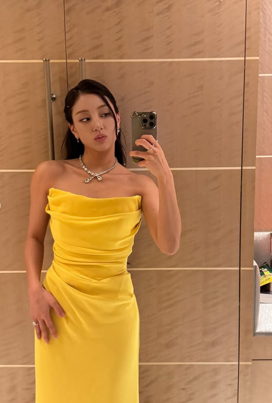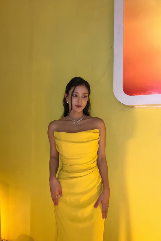 Thành viên Jihyo của nhóm TWICE đã thu hút sự chú ý khi diện chiếc váy trễ vai. Vào ngày 22, Jihyo đã đăng tải hình ảnh tham dự sự kiện của thương hiệu làm đẹp POSE trên tài khoản Instagram cá nhân. Trong bức ảnh, Jihyo mặc chiếc váy trễ vai màu vàng và tạo dáng thanh lịch. Làn da rám nắng nổi bật, tạo nên tổng thể vẻ đẹp quyến rũ.