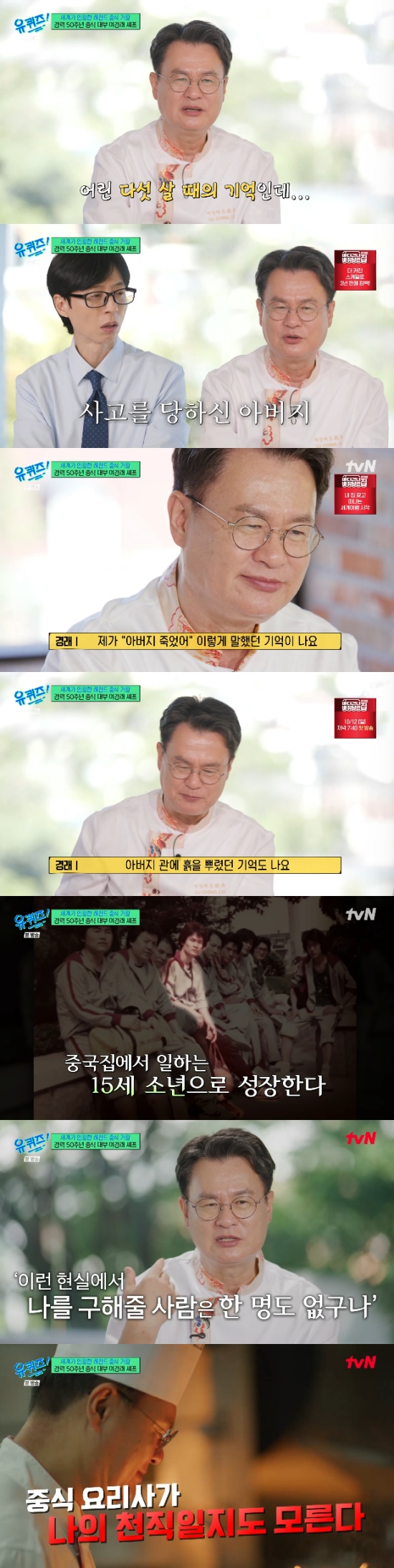Yeo Kyung-rae thẳng thắn chia sẻ nỗi đau thời thơ ấu và tai nạn của cha, giải thích cách trải nghiệm đó ảnh hưởng đến cuộc sống của ông với tư cách đầu bếp món Trung Hoa. Ông nói: "Lúc đó có nhiều khách say rượu và gây gổ. Trong hoàn cảnh đó, tôi cảm thấy không ai có thể cứu tôi, tôi tuyệt vọng. Tôi khóc và rồi một ngày quyết định thay vì nghĩ tiêu cực, hãy sống chăm chỉ vì tương lai."