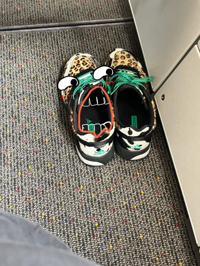 Ngoài ra, Han Dong còn đăng ảnh cầm bát trứng trong nhà và ảnh tận hưởng khoảnh khắc thư giãn với cốc nước ở công viên ngoài trời. Trong ảnh ngoài trời, đài phun nước được chiếu sáng và cây cối làm nền, truyền tải cuộc sống bình yên của Han Dong. Cuối cùng, có thể thấy đôi giày họa tiết hổ nổi bật đặt trên sàn văn phòng.