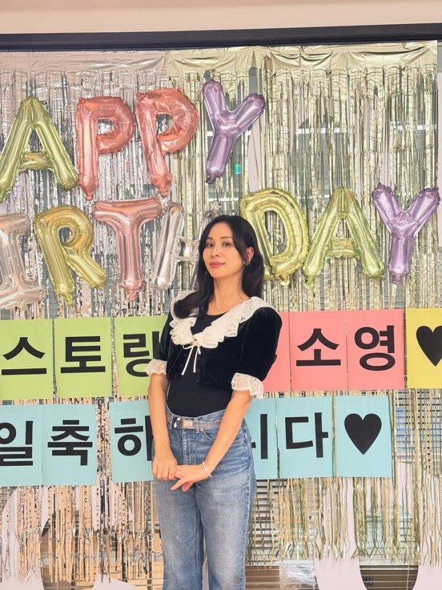 Nữ diễn viên Go So-young gần đây đã chia sẻ với người hâm mộ trên SNS của mình những bức ảnh đa dạng kèm theo một tin nhắn ngắn nhân dịp sinh nhật. Go So-young mặc áo blouse đen và quần jeans, mỉm cười rạng rỡ trước phông nền kết hợp bóng bay màu sắc và lời chúc mừng sinh nhật, tạo dáng chữ V bằng tay, thể hiện những khoảnh khắc đời thường tự nhiên. Cô cũng tạo dáng đặt một tay lên eo hoặc vòng tay ôm eo, toát lên vẻ thư thái và thanh lịch.
