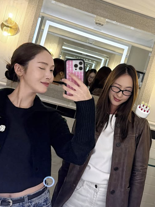 Trong những bức ảnh được đăng tải, Jessica và Jung Soo-jung đứng tựa vào tường cạnh nhau, nổi bật với tỷ lệ cơ thể tuyệt vời của cả hai. Họ còn thu hút ánh nhìn với vẻ ngoài giống nhau và phong thái lạnh lùng quyến rũ. Ở bức ảnh khác, hai người nắm chặt tay nhau đi dạo trên phố, thể hiện tình chị em thân thiết.