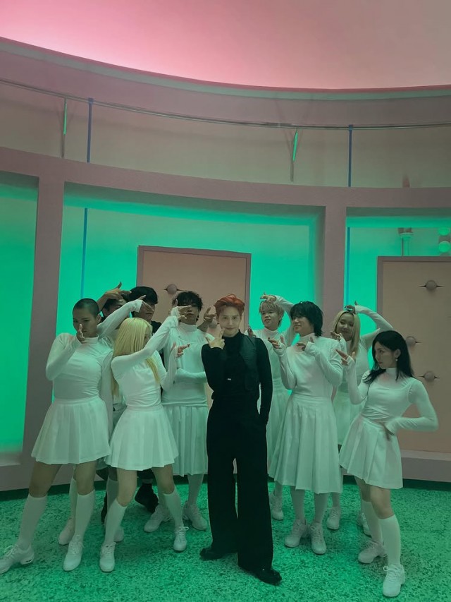 Cùng với đó, anh cũng chia sẻ hình ảnh mặc áo thun xám và quần đen, tạo dáng đa dạng trong không gian trong nhà có rèm cửa màu xanh lá cây. Một số bức ảnh khác cho thấy anh ngồi tựa thoải mái vào gối, với TV làm nền, tạo nên không khí thư giãn. Trong bức ảnh khác, Suho mặc áo sơ mi trắng và quần đen, đeo kính và tạo dáng chữ 'V', thể hiện nhiều nét quyến rũ khác nhau. Cuối cùng, có bức ảnh anh quỳ gối mặc trang phục đen và những bức ảnh khác chụp cùng nhiều người trong không gian trong nhà được chiếu sáng bằng đèn màu xanh lá cây cũng thu hút sự chú ý.