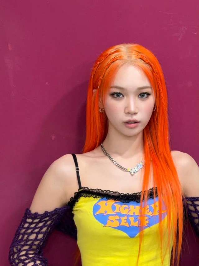Kim Chae-won của LE SSERAFIM gần đây đã chia sẻ cuộc sống hàng ngày tươi sáng và dễ thương trên SNS. Kim Chae-won mặc áo tank top màu vàng và váy kẻ sọc, dùng một tay chỉ vào môi và nháy mắt. Mái tóc dài màu cam và găng tay ren màu tím thu hút ánh nhìn, bức ảnh với nền tường đơn sắc màu hồng tạo nên không khí rực rỡ nhưng vẫn tinh tế.