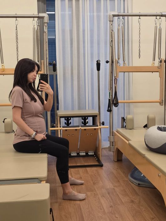 Eun Ga-eun tiếp tục nói: "Tôi sẽ chăm chỉ tập thể dục và chuẩn bị thật tốt để gặp em bé! Câu chuyện phía sau việc mang thai sẽ được gặp trên YouTube." Cô cũng công khai những bức ảnh ghi lại hình ảnh cô đang tập Pilates để giữ gìn sức khỏe trong thời gian mang thai. Trong ảnh, vòng bụng của Eun Ga-eun ở tuần thứ 22 đã hơi nhô lên, thu hút sự chú ý.