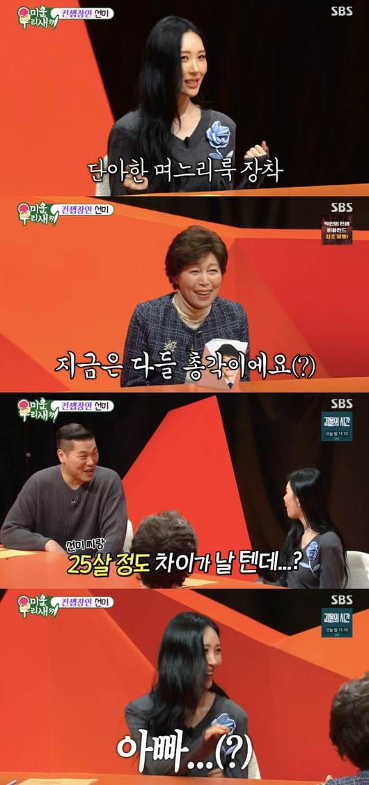 Trong chương trình giải trí của SBS phát sóng ngày 2, ca sĩ Sunmi đã xuất hiện với vai trò MC đặc biệt. Sunmi đã thu hút sự chú ý của khán giả khi thể hiện phong cách con dâu thanh lịch trên sóng truyền hình. Shin Dong-yup hỏi: "Hôm nay bạn mặc trang phục con dâu, vậy bạn là con dâu của ai?" Mẹ của Yoon Min-soo đáp lại: "Có lẽ Yoon Min-soo sẽ bị loại trừ," khiến mọi người bật cười.