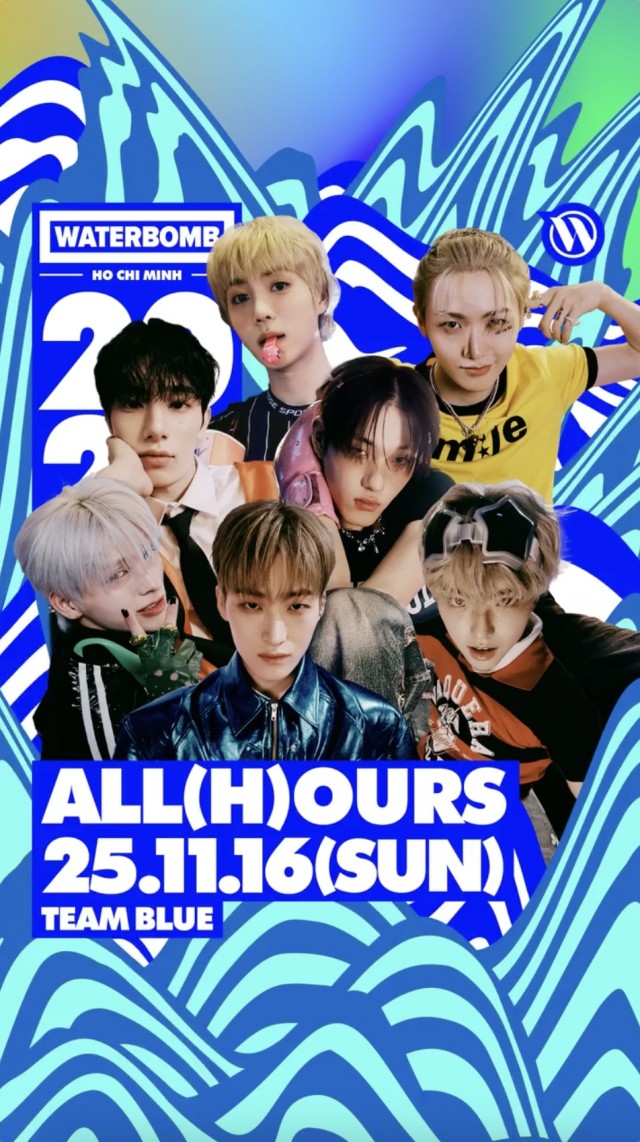 Nhóm ALL(H)OURS lần đầu tiên biểu diễn trên sân khấu 'Waterbomb' kể từ khi ra mắt. ALL(H)OURS sẽ xuất hiện tại 'WATERBOMB HO CHI MINH CITY 2025' diễn ra vào ngày 16 tại thành phố Vạn Phúc, TP. Hồ Chí Minh, Việt Nam theo giờ địa phương.