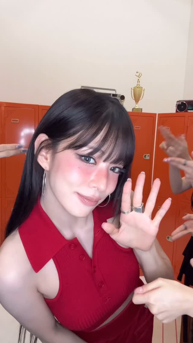 Nhóm nhạc nữ fromis_9 đã giao lưu với người hâm mộ bằng nụ cười tươi tắn và năng lượng rạng rỡ. Gần đây, trên tài khoản SNS chính thức của fromis_9 đã đăng tải một bức ảnh thành viên mặc áo crop top màu đỏ, giơ một tay chào trong không gian nội thất có tủ đựng đồ màu cam.