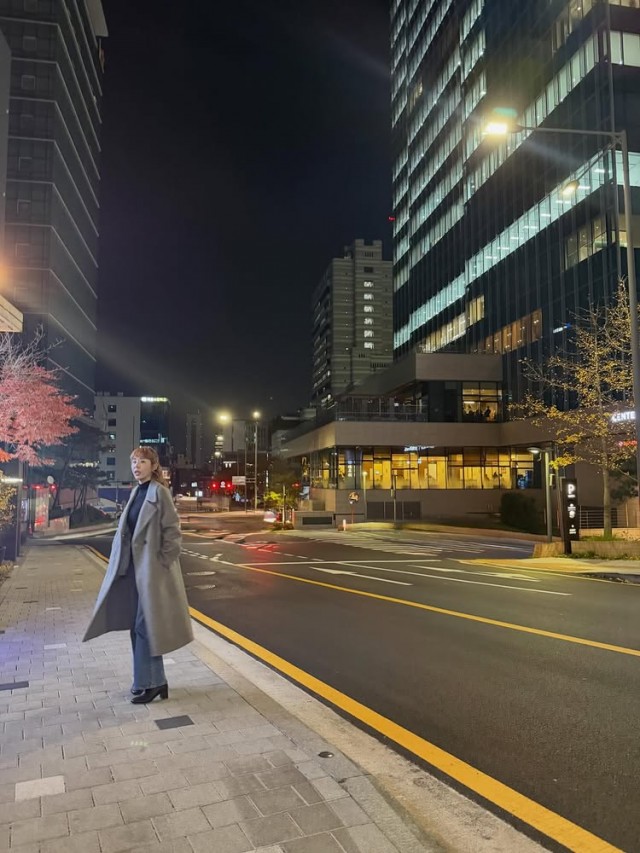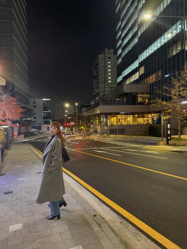 Ca sĩ Shin Ji đã tiết lộ hình ảnh cô mặc áo khoác lần đầu tiên trong mùa đông năm nay. Shin Ji gần đây đã đăng trên Instagram cá nhân hình ảnh cô kết hợp áo khoác dài màu xám với quần jeans, kèm theo dòng chữ ngắn gọn "Trang phục áo khoác đầu tiên trong năm?" và khoảnh khắc cô đi bộ trên phố thành phố.