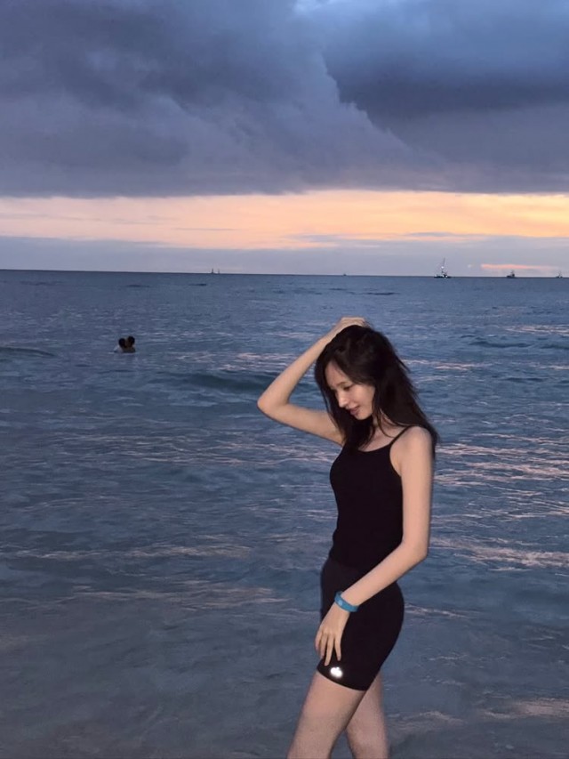 Liz đã đăng nhiều bức ảnh kèm dòng chữ "Hawaii ??️" trên SNS của mình. Trong những bức ảnh được công bố, Liz mặc áo tank top màu be, cầm đồ uống và tận hưởng sự thư giãn tại không gian ăn uống ngoài trời. Hình ảnh cô đeo kính râm, nhìn thẳng vào ống kính và uống đồ uống để lại ấn tượng sâu sắc.