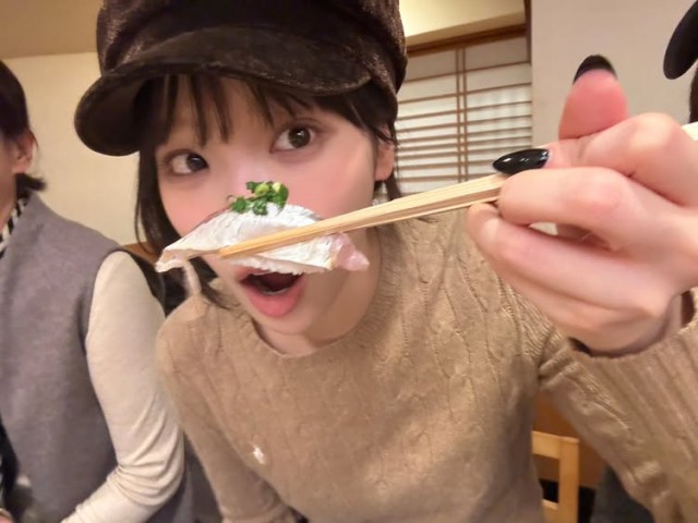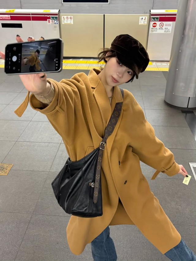 Trong một bức ảnh khác, cô mặc áo len màu nâu và cầm tách cà phê trên tay. Tổng thể phong cách vừa nhẹ nhàng vừa tinh tế, biểu cảm tự nhiên và cử chỉ thoải mái của Kim Chaewon thu hút sự chú ý.