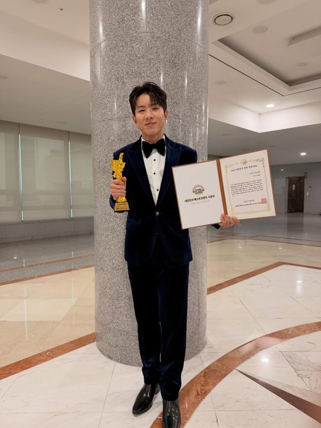 Ca sĩ trot Na Tae-joo đang nhận được sự chú ý lớn khi giành giải Nghệ sĩ K-Trot tại Giải thưởng Giải trí Hallyu 2025. Tại lễ trao giải, Na Tae-joo thu hút ánh nhìn khi mặc tuxedo nhung đen, cầm giải thưởng và giấy chứng nhận với nụ cười rạng rỡ.