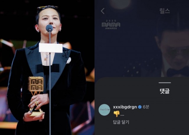 Ca sĩ G-Dragon đã bày tỏ sự tiếc nuối về sân khấu tại '2025 MAMA Awards'. Vào ngày 29, G-Dragon đã để lại biểu tượng cảm xúc 'Boomta' cùng dấu ba chấm trên video sân khấu của mình được đăng tải trên tài khoản chính thức của 'MAMA Awards'. Điều này được hiểu là anh thể hiện sự thất vọng về màn trình diễn của mình.