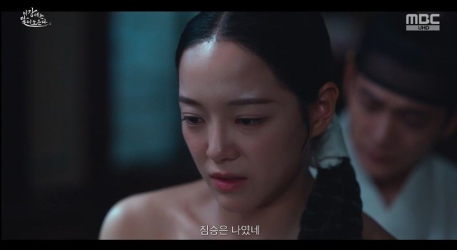 Park Dal-i trở về thực tại với vẻ mặt ngượng ngùng nói: "Tắt đi," rồi nằm xuống giường. Nhưng do bị thái giám chế tạocung nữ đánh đập, lưng cô đầy vết thương nên không thể nằm thoải mái. Lý Khang hỏi: "Lưng?" rồi lấy thuốc từ trên người đưa cho Park Dal-i. Anh nói: "Đây là thuốc, bôi đi." Park Dal-i đáp lại: "Cảm ơn. Đừng nhìn nhé," rồi đứng dậy.
